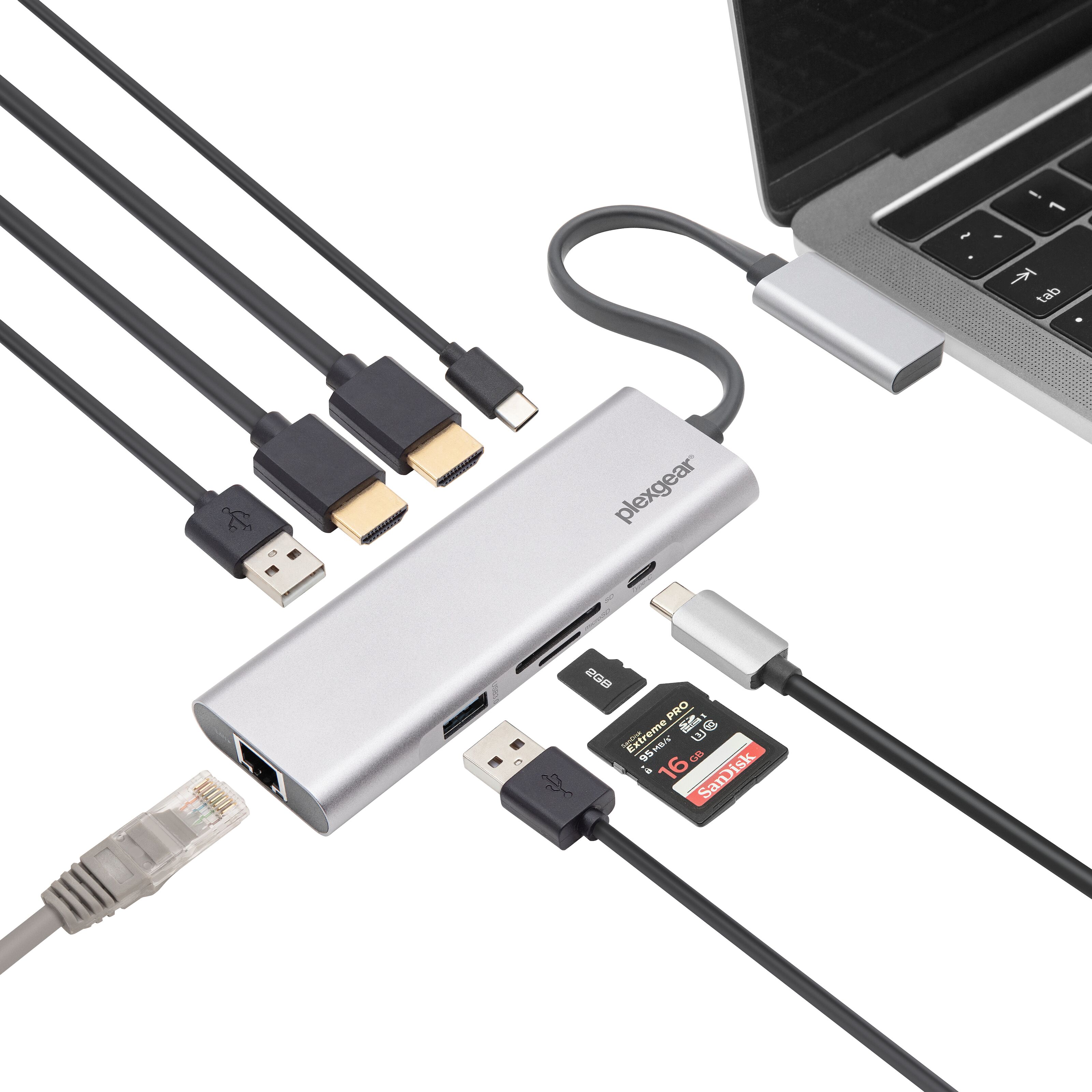 Plexgear Multiadapter för USB-C med 9 anslutningar